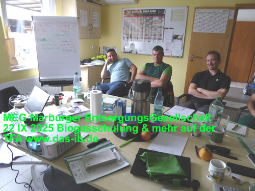 Bei uns am techn. Sitz 2025 Biogas ua nach TRGS 529 in 7 Unterrichtseinheiten a 45 Min: