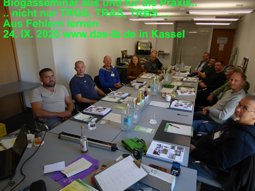 24. IX. 2025 in Kassel Klär- / Biogasseminar - schulung aus der Praxis für die Praxis und nicht nur DWA / DVGW / FvB - TRGSen, TRASen und TRBSen - aus Fehlern & Schäden lernen Deponiegas nach § 4 DepV und mehr ...ua am 23. IX. 2025 in Kassel 22. IX. 2025 Geschlossene Biogas TFA - Schulung - Inhausveranstaltung bei der Marburger Entsorgungs-GmbH (MEG), 35039 Marburg - direkt auf der Anlage für das Betriebspesonal mit dem RPA Gießen. 3.IX. 2025 Deponiegassemnar nach § 4 Deponieverodnung DepV Nr. 3 beim ALL (Abfallwirtschaftsbetrieb des Landkreis Leer) auf der Deponie Breinermoor 30. IV 2025 Deponie - und Biogasschulung (geschlossene Veranstaltung) bei der KAVG am Standort Pohlsche Heide von der TFA über MBA bis Deponiegasnutzung und zukünftiger Deponiegasnutzungen mit Biogasen aus der MBA und TFA Energiekonzepte - Ideen und Umsetzungen im Schulungsverbund West der DAS - IB GmbH - Vom Praktiker für PrakterInnen: Rückblick zu den Sicherheitstechnsichen Prüfungen an den Vortagen, Begehung von unterirdischen Bauwerken (Beispiel ua Todter beim AWVC), ATEX & Ex-Zonen, primärer Explosionsschutz, Gasdichtigkeiten - UEG - ppm, Geeignete Meßgeräte: PSA, Dichtheit , Aktuelle Schadenfälle z.B. Brand in BHKW - Gebäuden, AK-Brand 23. IV. 2025 WEV Zentraldeponie Cröbern (ZDC) - geschlossene Beratung & Schulung: Anwendung um Umsetzung der 12. BImSchV (Störfallrecht - untere Klasse insb. §§ 3 bis 8 und 16) für den Bau & Betrieb der Gasanlagen mit Deponiegas- und Biogas-Gasspeichern: Trockenfermentationsanlage (TFA nach dem Sysetm Herhof - KEA - Kompost- und Energie -Anlage), MBA und Deponiegasanlage. Einordnung der Erkenntnisquelle TRAS 120 in diesem Zusammenhang, Westsächsische Entsorgungs- und Verwertungsgesellschaft mbH, 04463 Großpösna