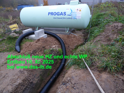 10. bis 13. XI. 2025 Abschluß Tiefbau / Erdbau für: Fernwärme vs. echte Wärmepumpe vs Flüssiggas für unsere Wärmeversorgung UND